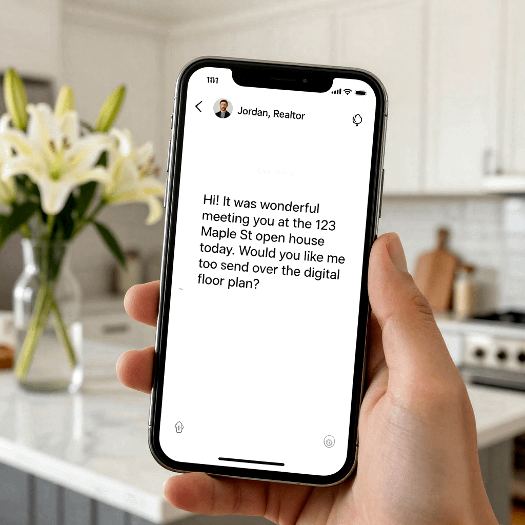 Within 1 hour text (keep it light): Mention what they liked, then offer a tiny next step. If they said “we loved the backyard,” use that exact phrase. People reply when they feel seen.